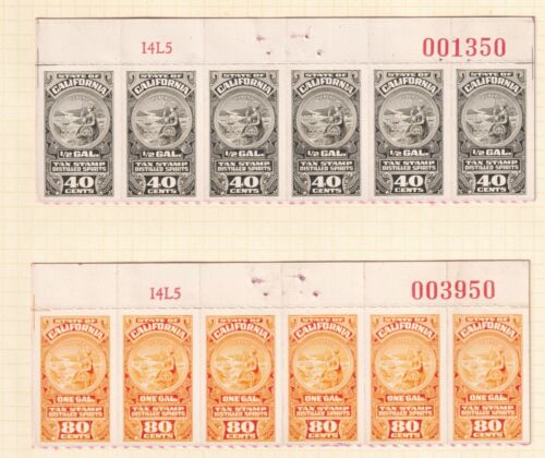 | 55 | CA liquor L22 – L27 5c – 80c MLH VF top blocks of 6, all w/control numbers |