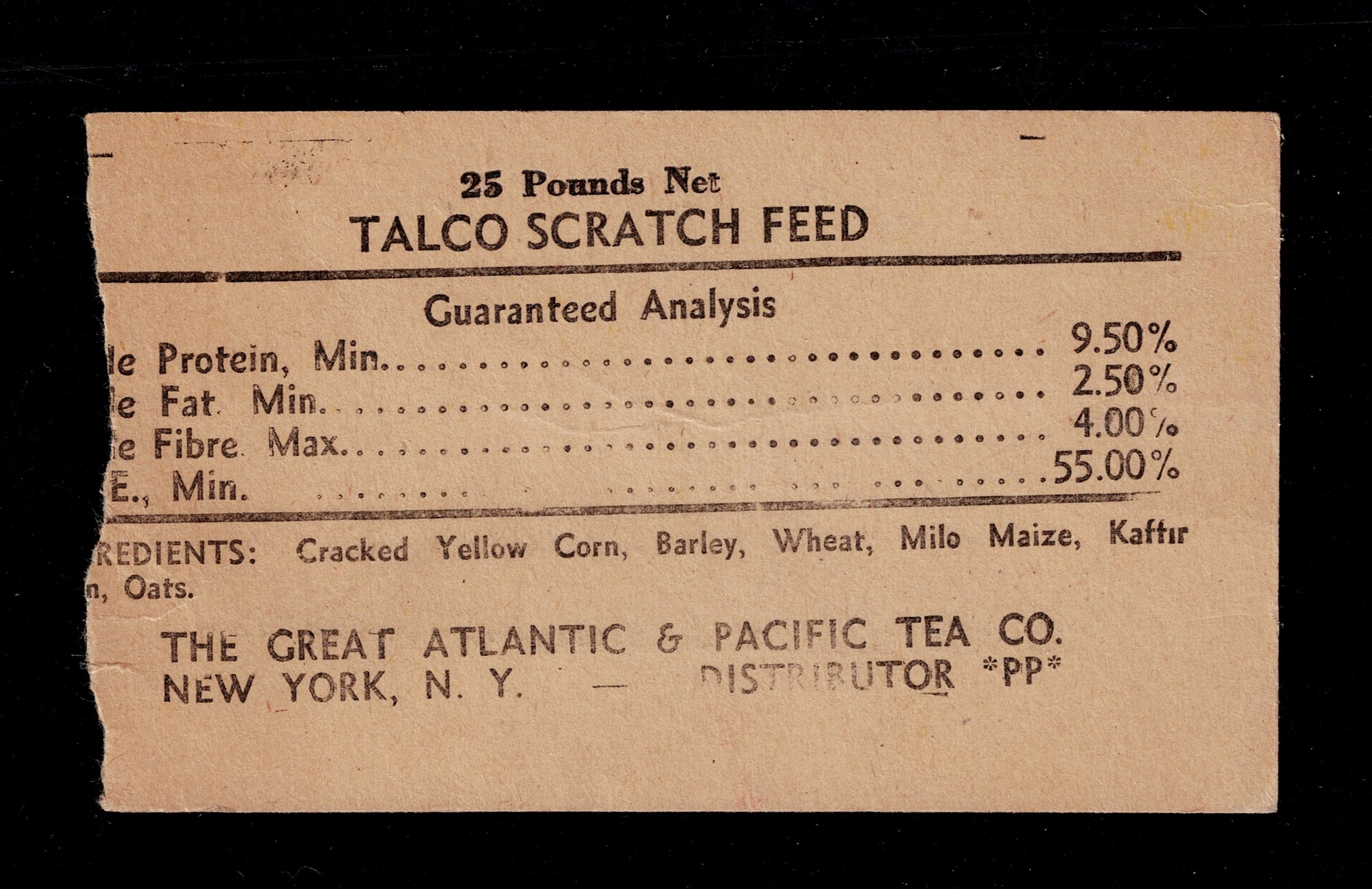 | 43 | CA feed tag FET51 100 lbs. U VF, torn eyelet, California Milling Growing mash | $20–40 | No bid | |